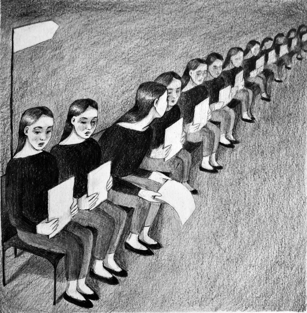 MITÄ sitten opitaan tässä kiireisessä tietopajassa? Kopioimista, plagioimista, itsestäänselvyyden suoltamista, liibalaaban lurittamista – toinen toistaan ovelampia vippaskonsteja valtavan työmäärän kampeamiseen. Opitaan, että kolmensadan sivun kirjasta voi tehdä esseen lukemalla kolme sivua. Opitaan, että valmiita esseitä ja oppimispäiväkirjoja voi copy pastettaa kurssilta toiselle turvautuen vain hyvin kevyeen editoimiseen. Opitaan, että on täysin mahdollista luovia kahden samanaikaisen Zoom-luennon välillä. Lopulta jokainen oppii kirjoittamaan oman valmiiden ajatusten sanakirjansa. Ja tietenkin jokaisen oma kirja on toisen kanssa identtinen.