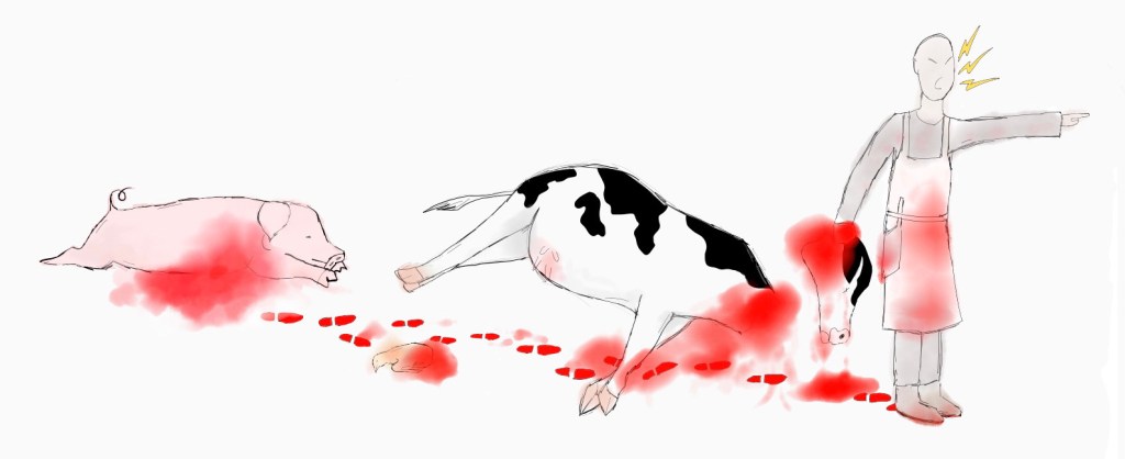 ”On aiheellista esittää kysymys siitä, onko keskustelu eläimen teurastustavasta edes relevantti sen jälkeen, kun eläinyksilöä on ensin hyväksikäytetty syntymästä lähtien.”