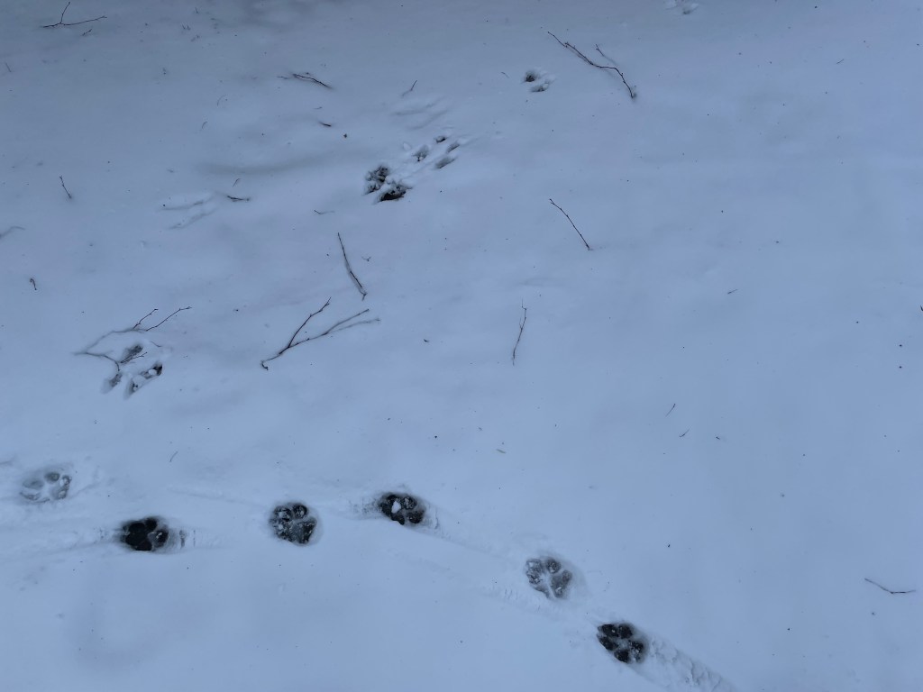 Koska nöyryyttävästä kokemuksesta ei (onneksi) jää kuvakokemusta jaettavaksi, lähetän Ylelle kuvan, jonka otin hankeen painautuneista koiran ja jäniksen jäljistä. Vaatimattomasta päästä oleva otos ei kuitenkaan pärjää kuvakilvassa Närpiön rannikolla otetulle kauniille maisemakuvalle.