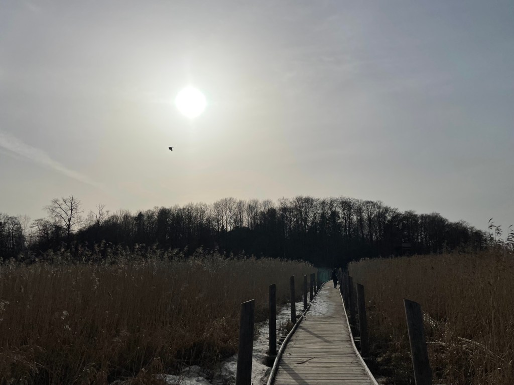 Kapeilla pitkospuilla täytyy tehdä säännöllisesti tilaa vastaantuleville, sillä Lammassaaressa on liikkeellä runsaasti reippailijoita. Monen kaulassa roikkuu kamera tai kiikarit; luonnonsuojelualue on suosittu paikka lintubongarien keskuudessa. Järjestelmäkameroiden jopa monikymmensenttiset objektiivit saavat minut kovin tietoiseksi kännykkäkamerani puutteista.