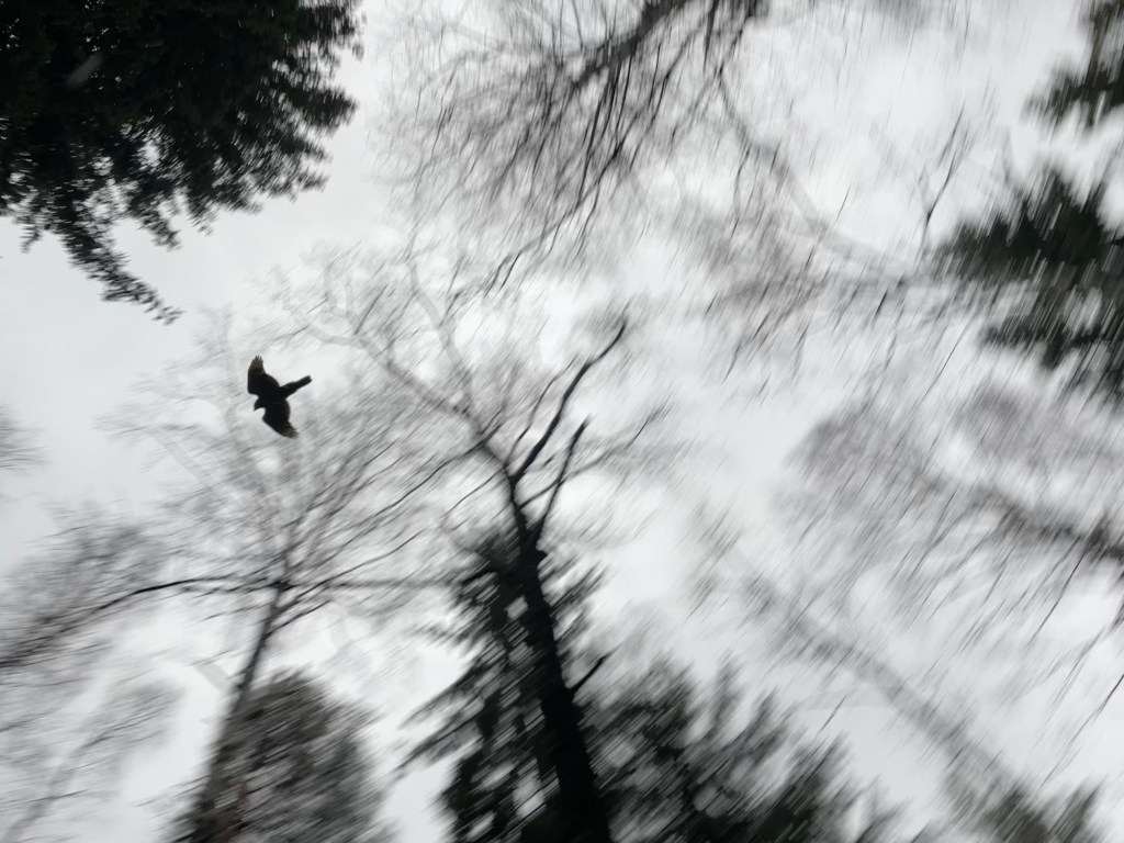 Kyykistelen lumisulan synnyttämän pienen lammikon edustalla. Hetki sitten ajoin takaa mustarastasta, nyt kuvaan oulunkyläläistä metsikköä lammikon heijastuksen kautta, molempia yhtä huonoin tuloksin. Päivän kiinnostavin luontohavainto on ollut susi, joka vaanii koululaisia viereisestä puusta roikkuvassa laminoidussa suunnistusrastissa. Pyyhin kylmän sateen kostuttamaa puhelimen näyttöä jatkuvasti housunlahkeisiini. Ruudulle ponnahtava ilmoitus kertoo, etten ole ainoa, jolla on akku lopussa.