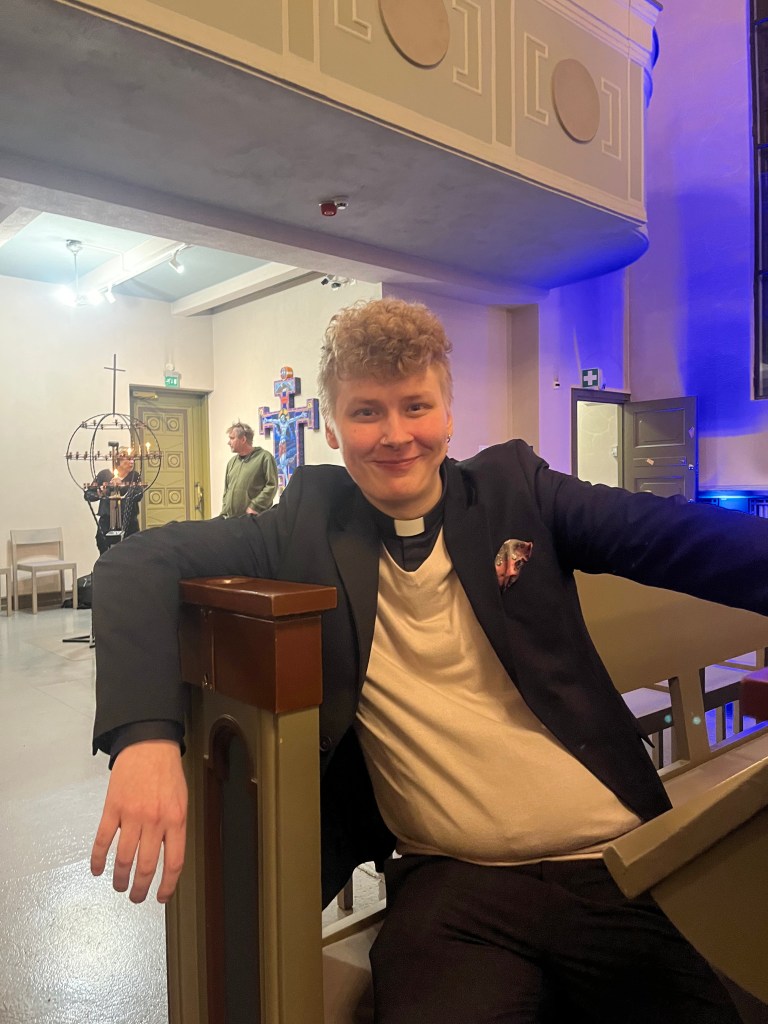Jumalanpalveluksen päätteeksi seurakunta kuuli tutut sanat, mutta pienellä lisäyksellä: “Lähtekää rauhassa. Olkaa rohkeat, pitäkää totuudesta kiinni. Kunnioittakaa kaikkia ihmisiä. Rakastakaa ja palvelkaa Herraa Pyhän Hengen – ei tekoälyn – voimassa iloiten.”