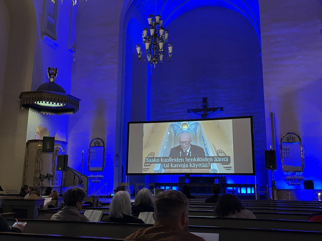 Paavalinkirkkoon kerääntyi runsaslukuinen joukko seurakuntalaisia seuraamaan, miten tekoälyllä tuotettu jumalanpalvelus eroaa tavanomaisesta. Policy jalkautui kirkkokansan joukkoon aistimaan ainutlaatuista tunnelmaa.