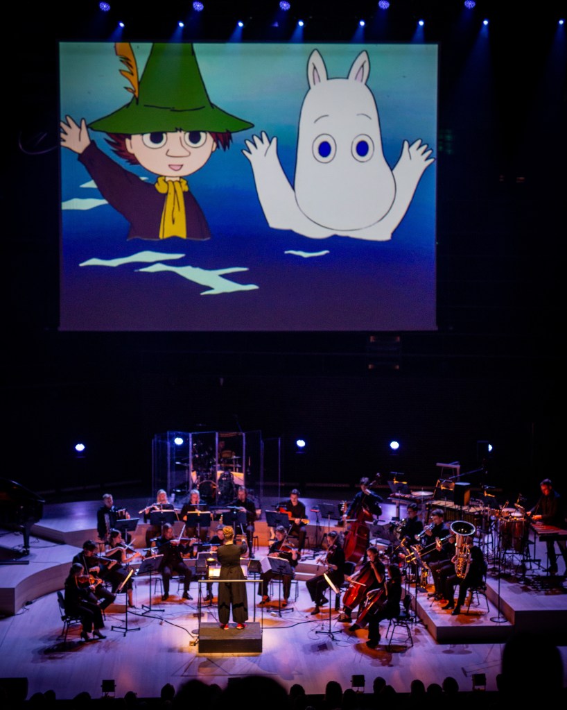 Tunnelmaa Helsingin Musiikkitalossa ennen sunnuntain 30.11. ensimmäistä muumikonserttia voisi kuvailla onnentäyteiseksi mutta hieman epäuskoiseksi. Muumimusiikin kuuleminen ihka oikean orkesterin esittämänä on ollut monen Muumilaakson tarinoiden kanssa kasvaneen unelma, mutta tuon unelman toteutumiseen tuskin monikaan on aidosti uskonut. Kun liput Musiikkitalon konsertteihin tulivat myyntiin keväällä 2025, ne vietiinkin käsistä ja myytiin loppuun vain minuuteissa. Suosiota seurasi ilmoitus lisäkonsertista ja lopulta viiden kaupungin kattavasta Suomen kiertueesta keväälle 2026.